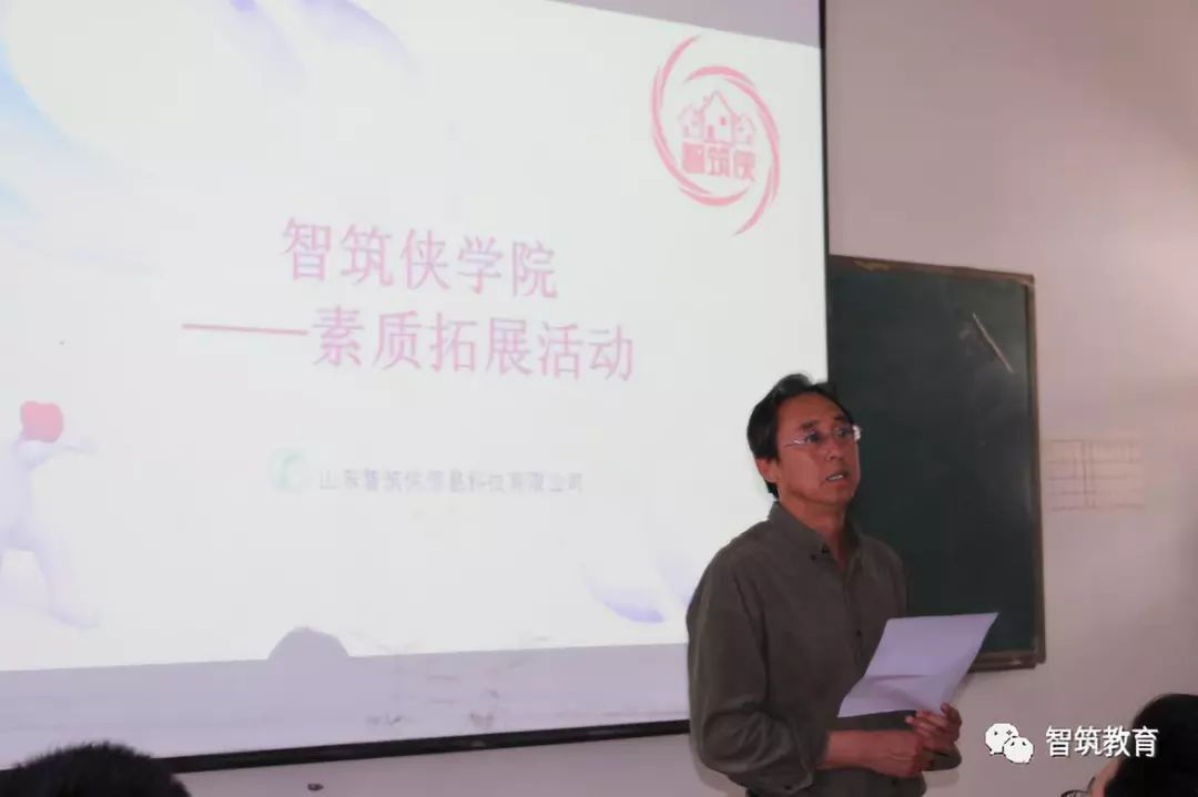 拓展活动开营仪式有建筑工程系郝国主任出席并致辞,参加仪式的还有16级、17级辅导员孙辉老师和王雪芹老师以及企业辅导员董强老师。郝主任向同学们说明了此次拓展活动意义目的,并在发言中强调要宣传正能量,活动中注意安全,最后预祝拓展活动取得圆满成功。
