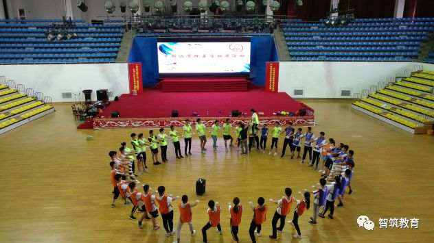 要求众人围成一圈双手紧握绳索拉撑,支撑一人在上面行走。同学们万众一心完成生命动力。团结是力量的源泉,团队是成功的载体,只有集聚众志,个人融入集体才能够取得成功。