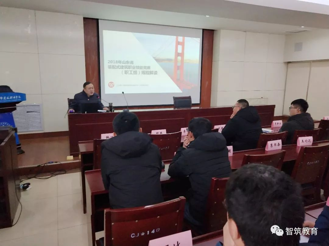 2019年1月6日,首届山东省装配式建筑职业技能竞赛职工组赛前培训会在山东城市建设职业学院顺利召开,共有来自山东省内的15家单位的28名选手参加。培训会在学院继续教育处陈瑞波主任的部署和带领下展开,首先由山东城市建设职业学院专业负责人李海全教授就大赛组织工作进行汇报。他表示,作为承办方,将遵循大赛宗旨、规范比赛流程、保障服务质量,严格按照大赛实施方案,公平公正,确保本次大赛的圆满成功。接下来山东新之筑信息科技有限公司总经理陆小珊对此次省赛规程及国赛报名进行了详细解读。