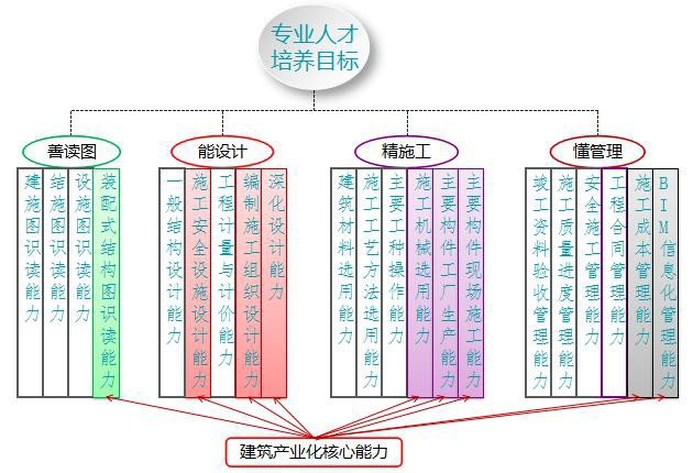 由企业提出装配式建筑产业化中对人才工作任务及职业能力的需求,建工系结合区域产业特色,培养具备从事中小型装配式民用建筑的设计、装配式建筑构件拆分设计、构件生产、装配式建筑施工以及建筑设计成果表现、计算机辅助设计等能力,适应装配式建筑设计,生产,施工,管理等职业岗位的高素质技术技能人才的需求。